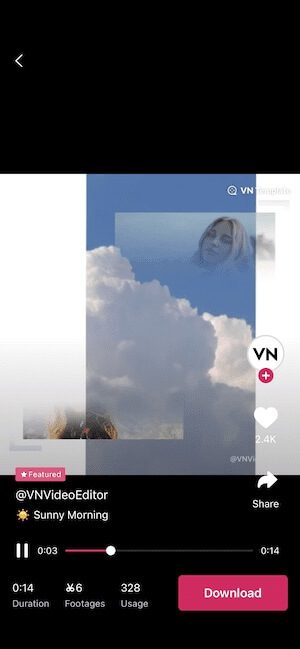 إذا كنت ترغب في تسهيل عملك في صناعة Reels، فإن Vita هو أحد أفضل التطبيقات التي يمكنك الحصول عليها. أهم ما يميز هذا التطبيق هو القوالب التي تتيح لك إنشاء مقاطع فيديو ممتعة وجذابة في أي وقت من الأوقات. يمكنك الوصول مباشرة إلى القوالب الأكثر شيوعًا عبر الزر الموجود في الأعلى. بمجرد الانتهاء ، اختر واحدًا ثم حدد الفيديو.