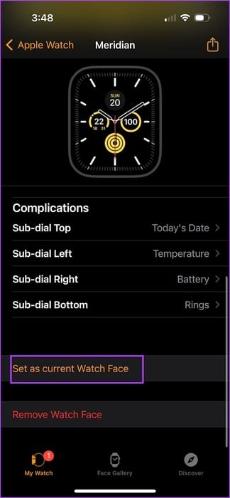 الخطوة 5: اضغط على “Set as Current Watch Face” لإجراء التغيير على Apple Watch.