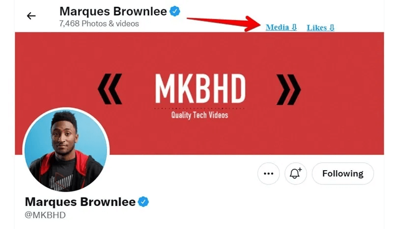 - لتنزيل جميع مقاطع الفيديو من الجدول الزمني للمستخدم بنقرة واحدة فقط ، افتح الجدول الزمني للشخص الذي تريد تنزيل ملفات الوسائط الخاصة به. انقر على زر “الوسائط” الجديد.