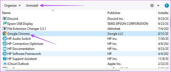 الخطوة 4: انقر على Google Chrome، ثم انقر على خيار إلغاء التثبيت.