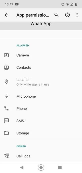 - افتح التطبيقات التي تطلب موقعك وقم بإيقاف إذن الموقع بالانتقال إلى “الإعدادات -> التطبيقات والإشعارات -> [اسم التطبيق] -> الأذونات.”