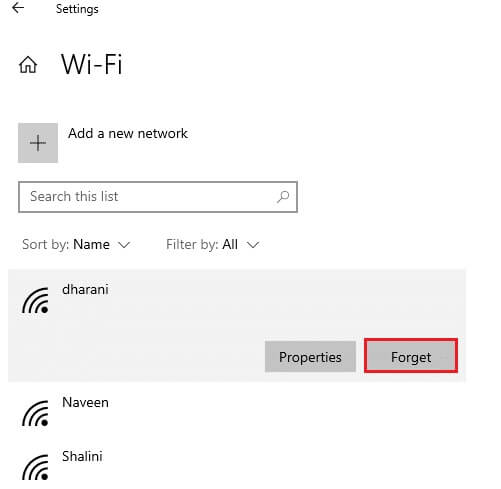 5. هنا سيتم عرض قائمة بالشبكات اللاسلكية التي قمت بإقرانها بنجاح سابقًا على الشاشة. انقر فوق أي شبكة لاسلكية تبدو غير ضرورية وحدد خيار Forget.