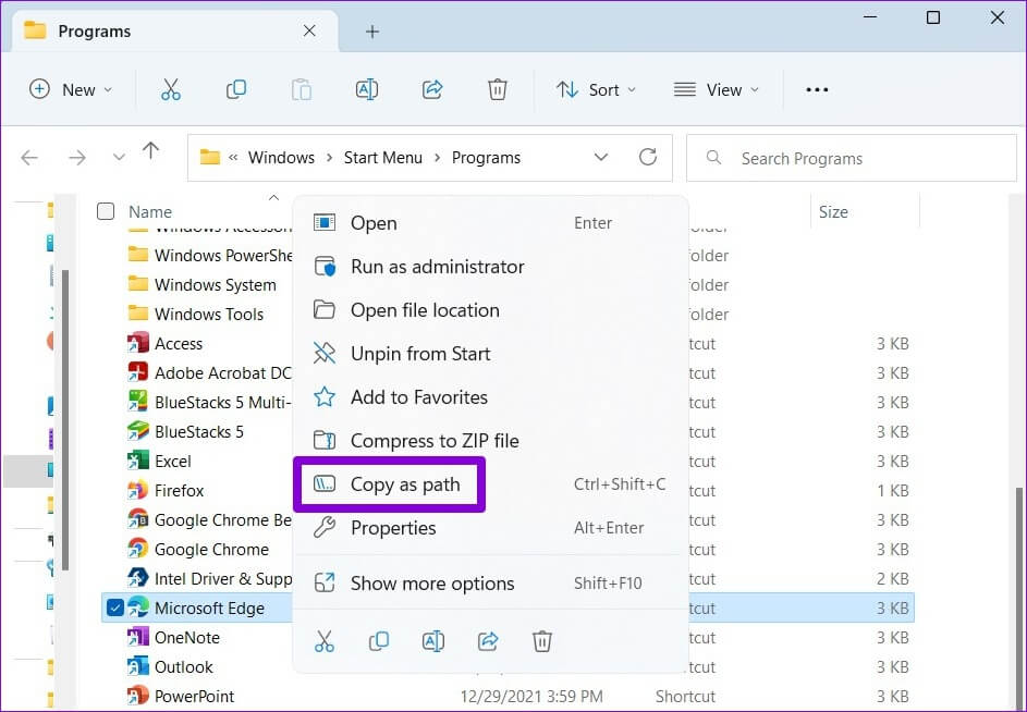 لحظر الوصول إلى الإنترنت لأحد التطبيقات على نظام التشغيل Windows 11 ، تحتاج إلى ملاحظة مسار الملف الخاص به باتباع الخطوات أدناه. لأغراض العرض التوضيحي ، سنقوم بتعطيل الوصول إلى الإنترنت لـ Microsoft Edge على Windows 11. لنبدأ.