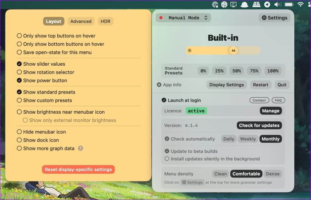 Lunar قادر أيضًا على فتح شاشة XDR الخاصة بجهاز MacBook Pro. يعمل نظام macOS على قفل شاشة جهاز MacBook الخاص بك عند 500 شمعة في المتر المربع، ومع Lunar، يمكنك الوصول إلى 1600 شمعة في المتر المربع أثناء العمل بالخارج تحت ضوء الشمس المباشر. قد يستغرق الأمر وقتًا طويلاً لبطارية الكمبيوتر المحمول الخاص بك، ولكن يجب أن يوفر تجربة مثالية.