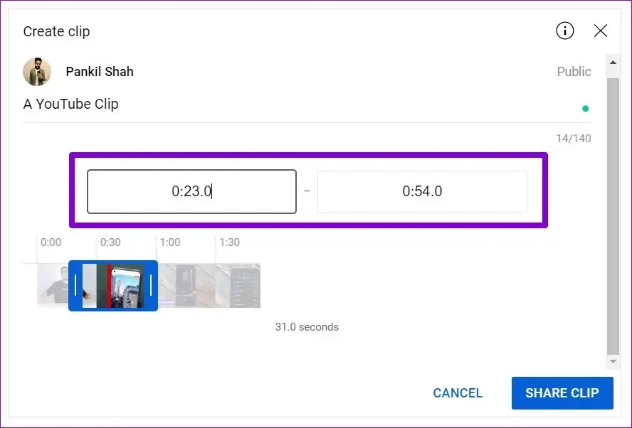 بدلاً من ذلك ، يمكنك أيضًا إدخال وقت البدءووقت الانتهاء لمقطعك في المربع.