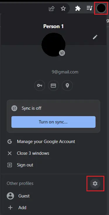 2. ستفتح نافذة chrome جديدة تسرد جميع ملفات تعريف المستخدمين النشطة. انقر على أيقونة المزيد من الإجراءات في بطاقة ملفك الشخصي.