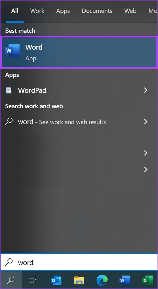 الخطوة 2: من النتائج، انقر فوق تطبيق أو مستند Microsoft Word لفتحه.