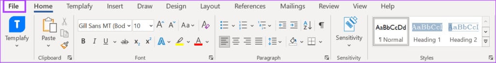 الخطوة 1: على شريط الكلمات، انقر فوق علامة التبويب ملف في الزاوية العلوية اليسرى.