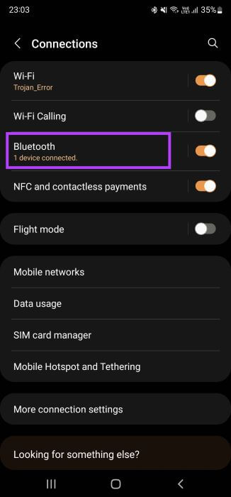 الخطوة 1: افتح تطبيق الإعدادات على هاتف Samsung الخاص بك وحدد علامة التبويب Connections. من المفترض أن يكون الخيار الأول في الجزء العلوي أسفل معلومات حسابك بشكل مثالي.