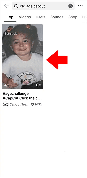 - في شريط البحث في TikTok ، اكتب “Old age CapCut”.