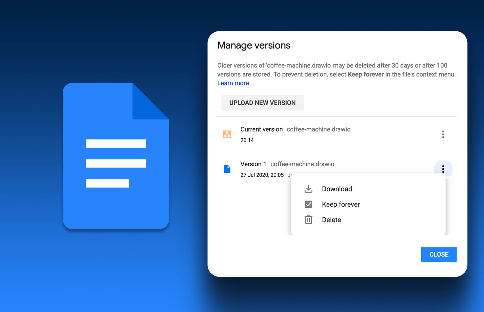 يحفظ محرر مستندات Google تلقائيًا إصدارات المستندات السابقة أثناء عملك عليها. يمكنك عرض أو استعادة أو إعادة تسمية أو حذف الإصدارات السابقة من مستند محرر مستندات Google في أي وقت تريده. هذه طريقة سهلة لتتبع التغييرات التي تجريها على المستند.
