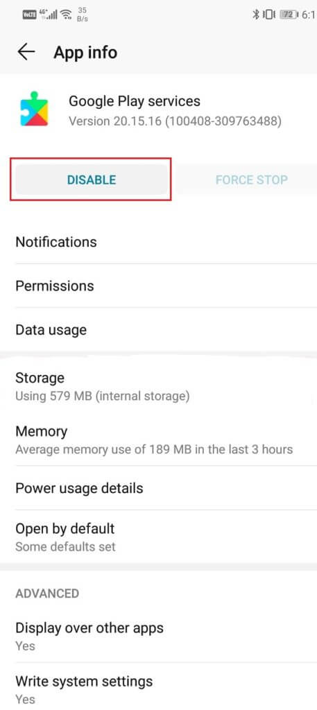 كما ذكرنا سابقًا ، لا يمكن إلغاء تثبيت خدمات Google Play ، والبديل الوحيد هو تعطيل التطبيق.
