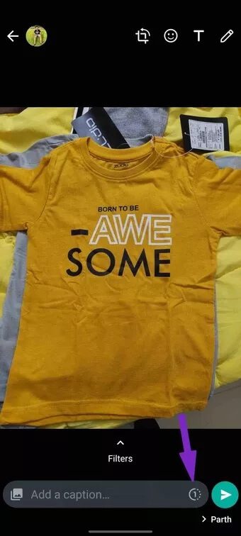 الخطوة 5: في واجهة تحرير الصور في WhatsApp ، ستلاحظ 1 مكتوبًا في دائرة في قائمة إضافة تسمية توضيحية.