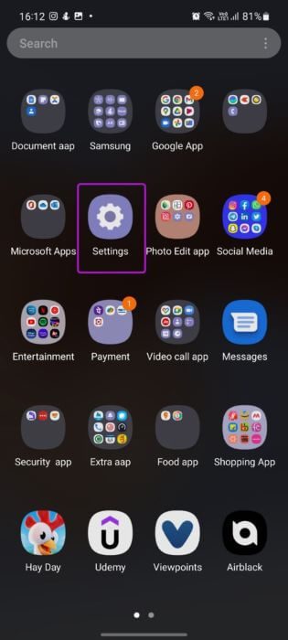 الخطوة 1: قم بتشغيل إعدادات Samsung.