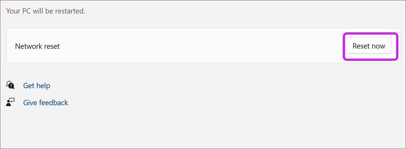 8. إعادة ضبط الشبكة